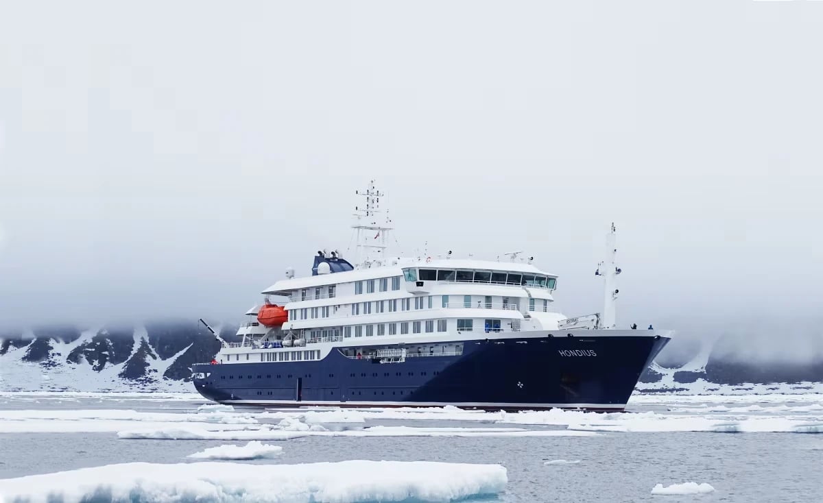 Hondius is a modern expedition ship operated by Oceanwide Expeditions. Launched in 2019, it can accommodate up to 174 passengers. The ship features comfortable cabins, a restaurant, a bar, a lecture room, and a fitness room. It is equipped with Zodiacs for shore landings and has an ice-strengthened hull for polar cruising.